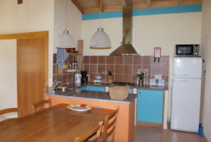 - Large open and well equipped kitchen consists of a 4-burner gas hob and microwave, refrigerator/freezer