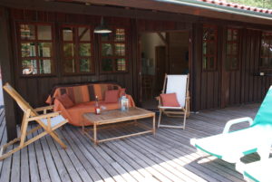 The views from the huge wooden veranda over the small stream are superb. Due to its location next to the playing ground (communal use) with trampoline, this house is also very suitable for families with young children.