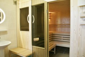 - Luxury 4-6 person Finnish sauna with electric oven + cold outdoor shower to cool down