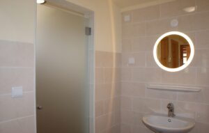 • Bathroom with a spacious shower and wash hand basin