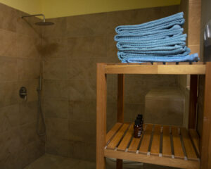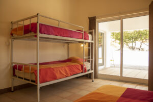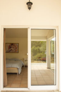 - Large bedroom of 18.5 sq m with large double bed and French window leading to the veranda which has outdoor shower facilities