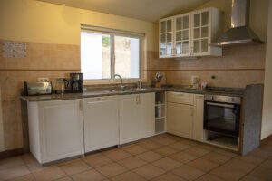 - An open plan kitchen, well equipped with gas oven with a 4 burner hob, refrigerator/freezer and dish washer