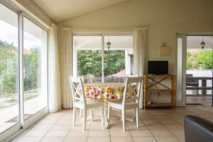 This characterful holiday home Casa Covas has two bedrooms and is suitable for stays up to 5 people. The veranda has a luxurious wooden lounge set, dining area and a BBQ. The accommadation is at ground level. Highly sought to overwinter in this beautiful part of Portugal.