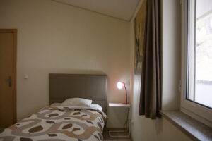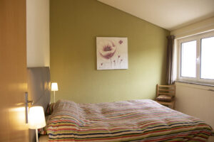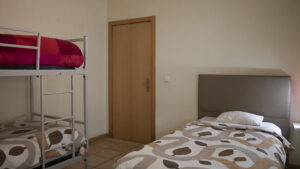 • Two bedrooms, each about 11.5 sq m. One with double bed (160x200cm), the other with one single (90x200cm) and a bunk bed