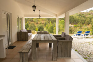 Holiday home Casa Covas has a great shady veranda with absolute privacy. The house offers in summer and winter the perfect orientation towards the sun, same style and the beautiful panoramic view over the stream, the lower terraces and the hill slopes of the valley.
